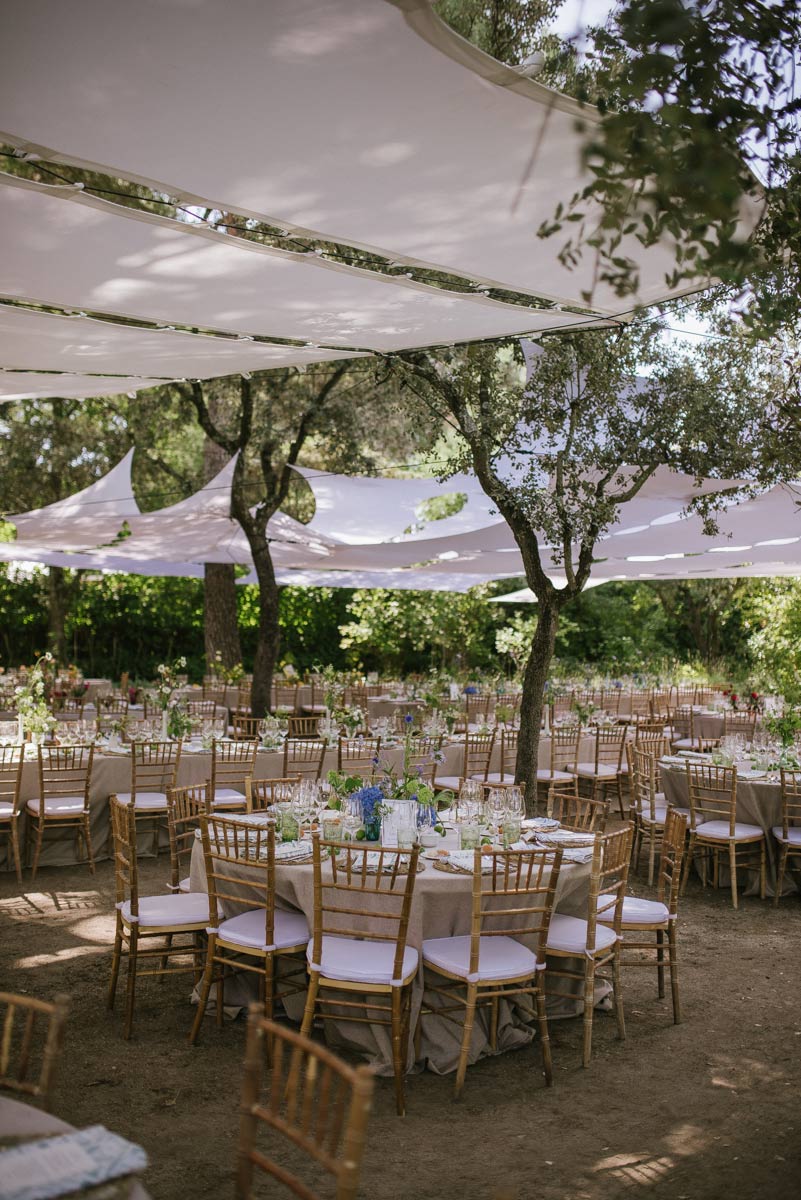 Me encanta la opción de poner una carpa que deje parte del cielo. ¡Recodad la carpa de cintas de colores que fabricó Vip Comunicación en la primera Calista One Summer Party que hicimos! Una opción ideal para las que estéis buscando carpas originales para vuestra boda.