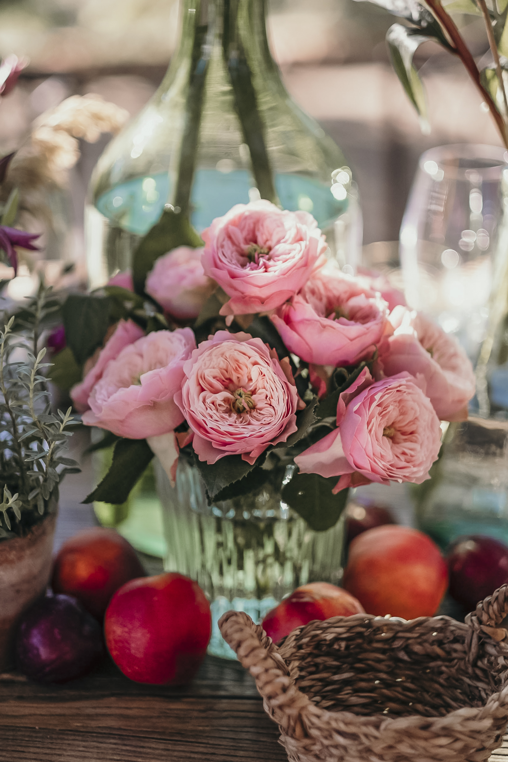 David de Floreale, que junto al mobiliario y menaje Cashmere me ha ayudado a hacer realidad la mesa perfecta para una noche de verano, sabía que Narciso Rodríguez es uno de mis perfumes favoritos y por eso ha mezclado frutas como el melocotón, con la decoración floral, porque es una de las notas de salida de la fragancia.